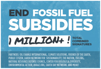 As I’m writing this, over 100,000 people have actually signed a petition asking that we cut these fossil fuel subsidies. Of course, if you haven’t already, you can sign it too!