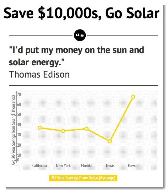 I recently created the short infographic below to highlight the 20-year savings from going solar in some of the most populous states in the country, as well as in Hawaii, which has the greatest average savings per project.