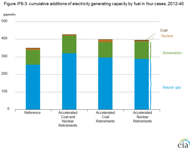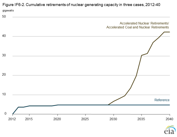 Large-scale simultaneous retirements of both coal-fired and nuclear capacity could have a significant effect on the electric power system. In order to assess that potential effect, the AEO2014 Accelerated Coal and Nuclear Retirements case combines the assumptions of the Accelerated Coal Retirements case and the Accelerated Nuclear Retirements case.