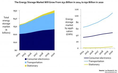 Much of the predicted rise will be in “transportation applications,” which will rise to $21 billion by 2020, according to Lux Research. Narrowing the gap between that portion of the market and the portion represented by electronics — which is predicted to rise to $27 billion by 2020. The remainder will be filled out by “stationary applications” — which are expected to rise to $2.8 billion.