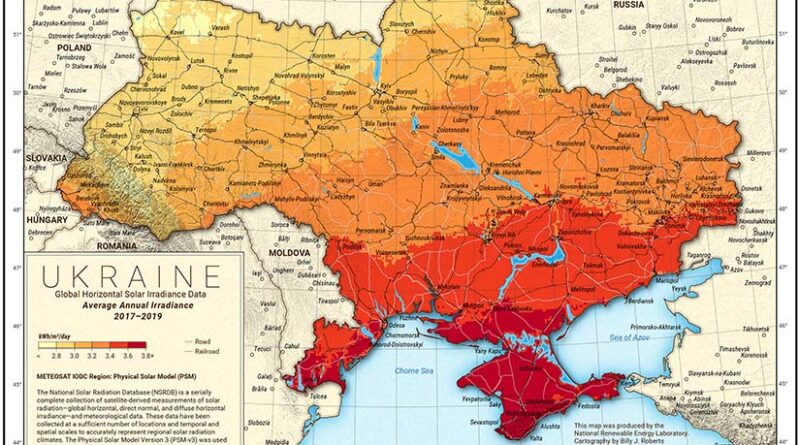 Image: Solar resource data map of Ukraine courtesy of US National Renewable Energy Laboratory.