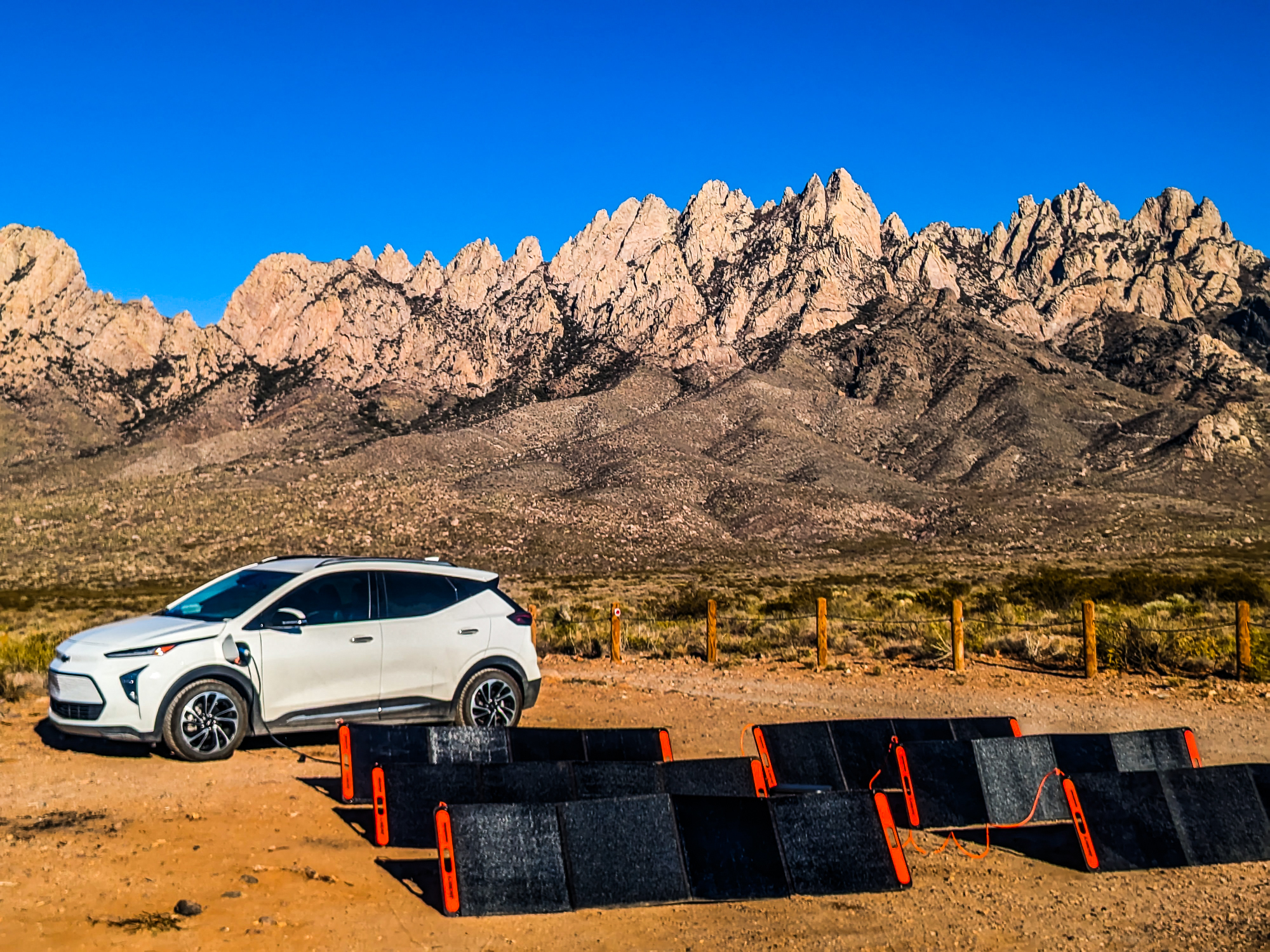 The obvious alternative is to just use an EV’s battery to provide the power, and that’s what I’ve been doing lately. I keep the solar panels in my trailer for multi-day stays at a campsite when it makes sense to deploy the solar array, but most of the time my campsite is powered by Electrify America.