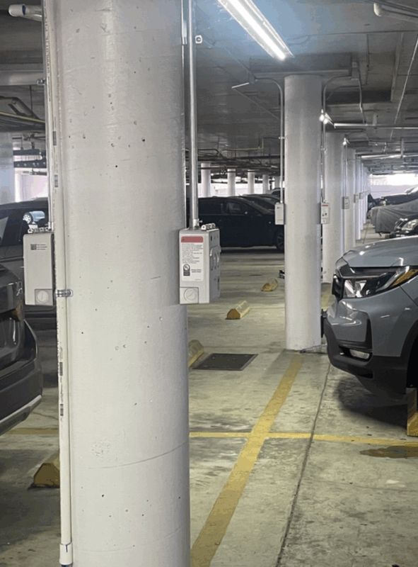 Each unit has 3 outlets that are shared between 2 parking spaces. So each parking space has a dedicated level 1 outlet and has the option to utilize the low power level 2 outlet, per the EV driver’s needs/preferences.