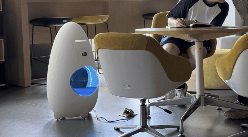 The indoor carbon capture and air purification device uses an egg-shape design intended to symbolize rebirth and regeneration. Standing a little less than a meter tall, it is not obtrusive but is designed to be noticed and bring attention to the role it plays. The ability for the rounded shape to preserve airflow around it when placed in the corner of a rectangular room was a fortunate side benefit. The transparent window visibly shows the CO2 converted into calcium carbonate and is asymmetrical to give the device a sense of movement. Depending on the light color used, it looks like a post-modern fireplace … only taking CO2 out of the air instead of adding it.