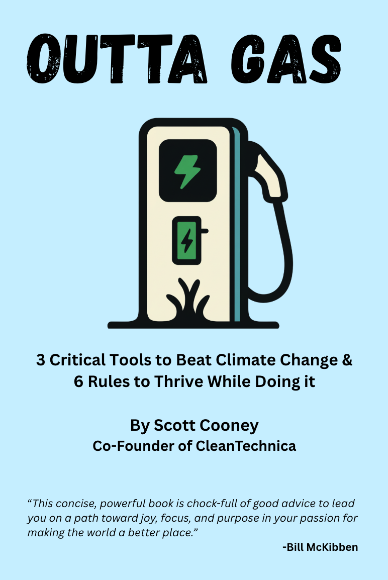We’re also pre-selling signed copies of Outta Gas, the first book produced by CleanTechnica Press, and written by yours truly, about how to make effective and positive change AND live our best lives at the same time. It’s full of puns, so if you like puns, it’s worth it for that by itself. 🙂 The book chronicles all the incredible progress we’re making globally to transition the entire global economy to a clean energy future, gives major action steps that can guide our actions effectively, taps into ecopsychology to help us handle the roller coaster that is climate work, and provides a blueprint to rewire our minds for long-term happiness that stems from leading a meaningful life in do-goodery.