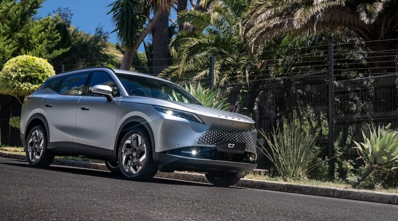Images: The Omoda C7 SHS (PHEV). Equipped with an 18.4 kWh LFP (lithium-ion phosphate) battery, which can charge from 30-80% in just 20 minutes via a 40 kW fast charger, or from 25-100% in 160 minutes when plugged into a 6.6 kW charger. Images courtesy of Chery South Africa