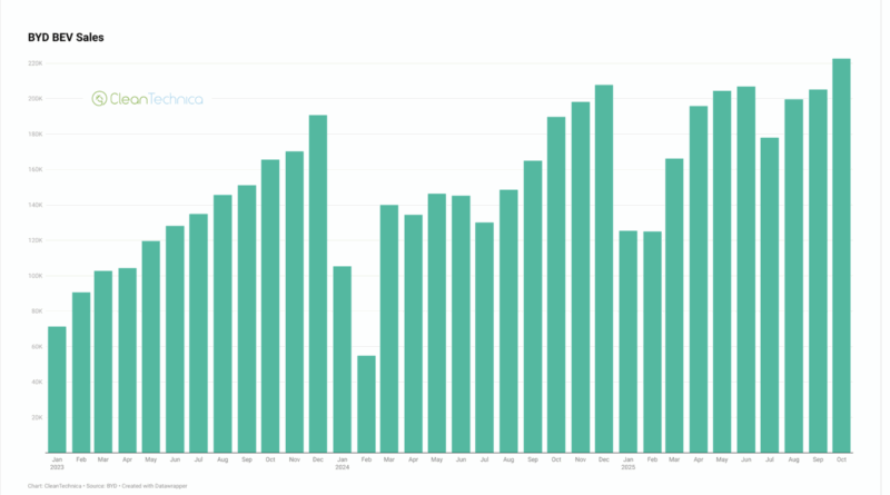 BYD’s passenger vehicle sales had mixed results in October, with BEVs up, PHEVs down even more, and plugin passenger cars down overall. It was a similar such split in commercial vehicle sales. Electric bus sales were down, while non-bus electric commercial vehicle sales were up. Though, BYD’s non-bus commercial vehicle … [continued]